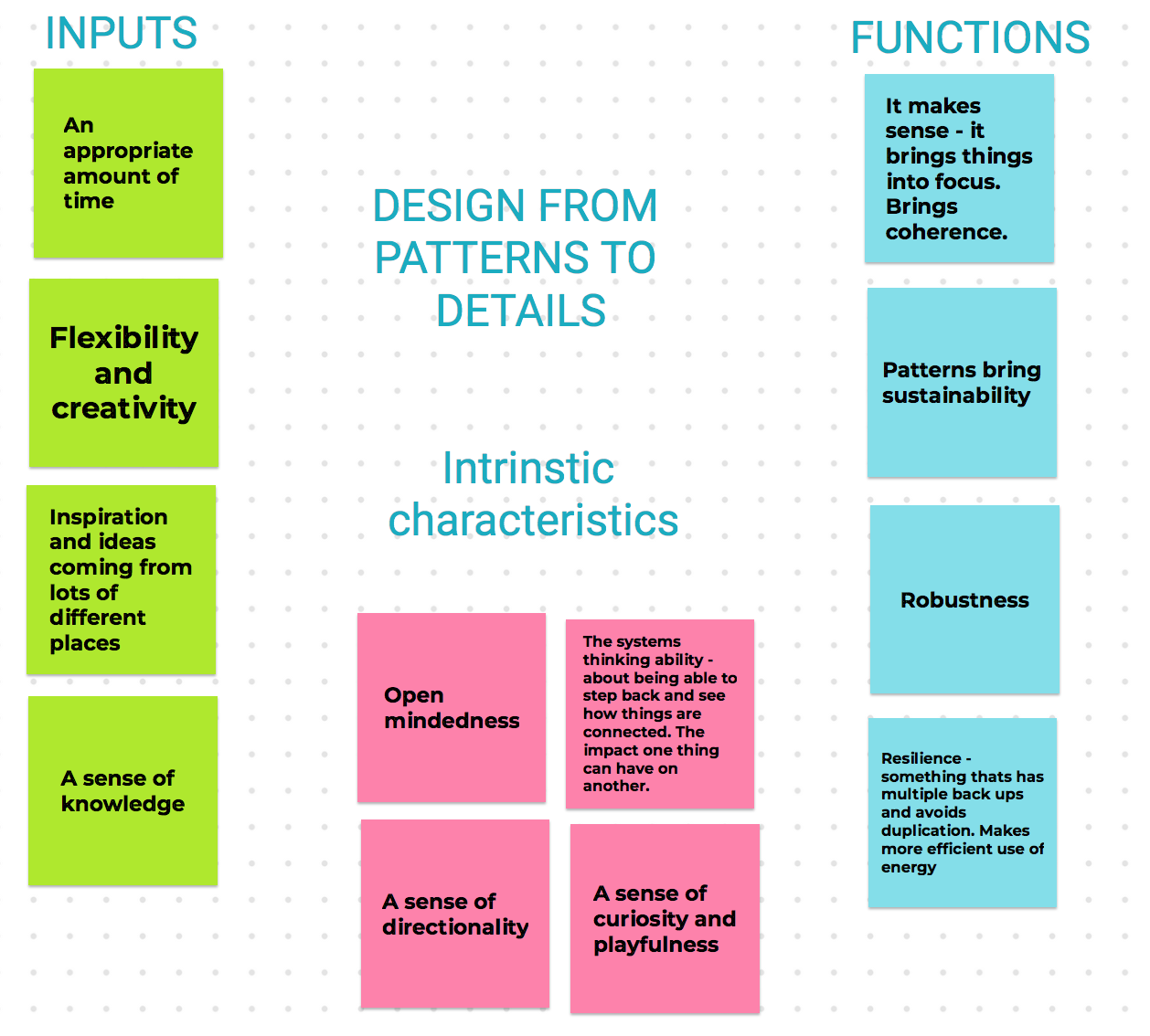 Now that we have an idea of what patterns we may choose to look for, what context do we need to create in order for this kind of thinking to flourish, what benefits may it bring, and what are the intrinsic characteristics of taking this approach?