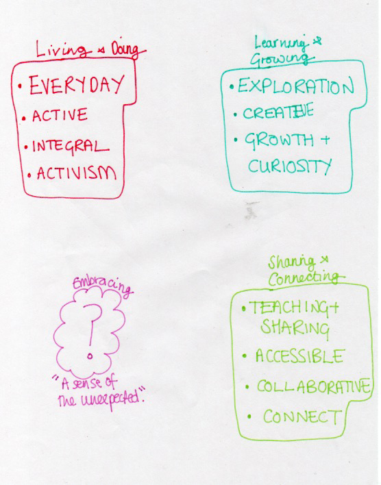 Key: Living and Doing, Learning and Growing, Sharing and Connecting, Embracing